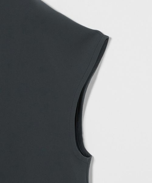 このシリーズの特徴である、「Less」なデザインを意識し、女性の身体的特徴に合わせてタックやファスナーを配することで体の凹凸をカバーしフラットに見えるように仕立て、着心地のよさも追求しています。