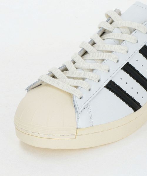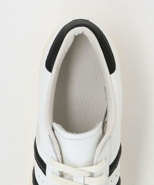 アイコニックなシェルトゥ、ギザギザのスリーストライプス、ゴールドフォイルのブランディングなど、オーセンティックな仕様を受け継いだ美しいシルエットが特徴です。