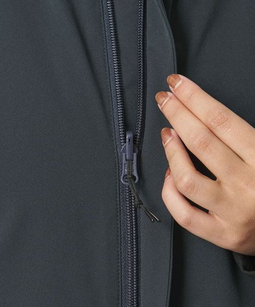 このシリーズの特徴である、「Less」なデザインを意識し、女性の身体的特徴に合わせてタックやファスナーを配することで体の凹凸をカバーしフラットに見えるように仕立て、着心地のよさも追求しています。