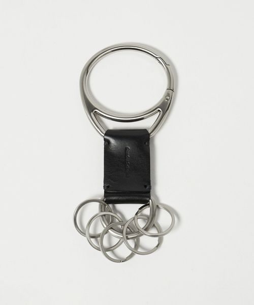 リングが5つ付属し、鍵やチャームなど装着可能な独特なデザインが特徴。