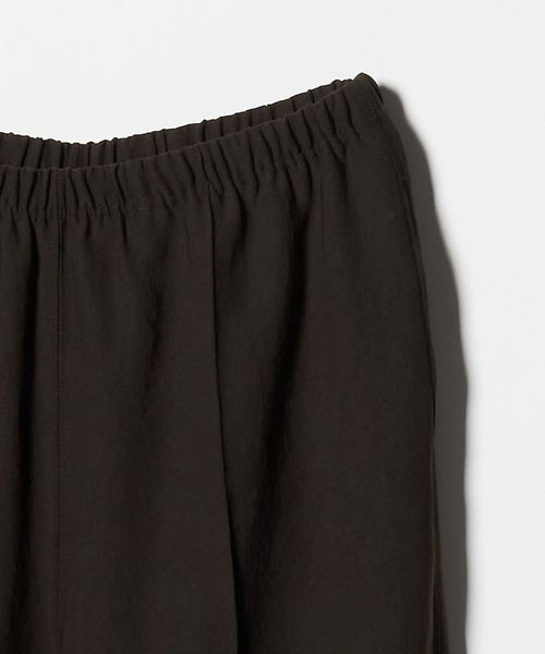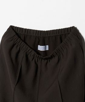 独特のドレープ感がある、スラックスをイメージしたシルエットが特徴。