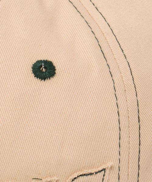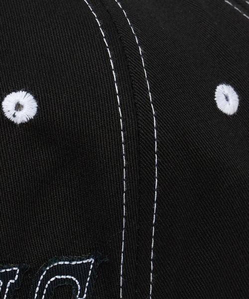 フロントパネルとバイザーに、ダイカットされたロゴが配されたキャップ。