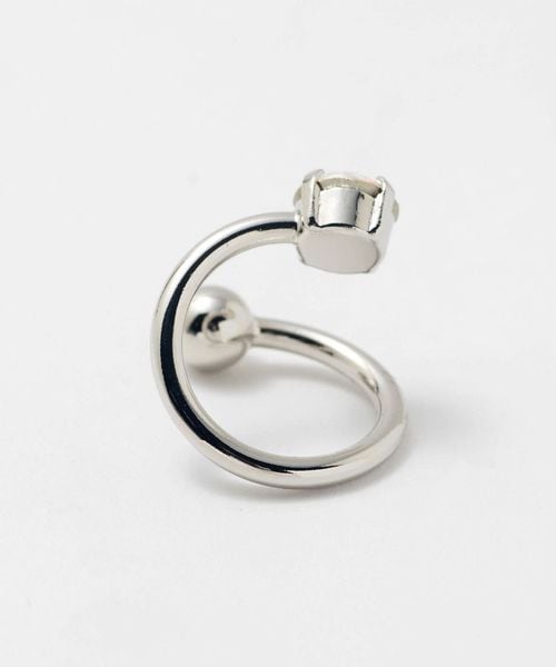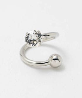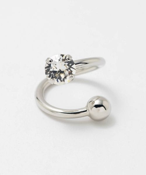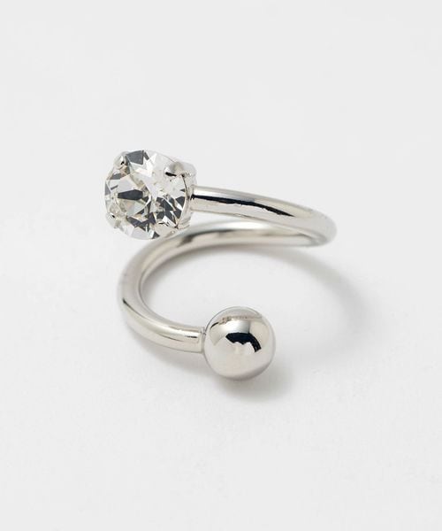 シルバーカラーのスパイラルリングにクリスタルをあしらったリング。