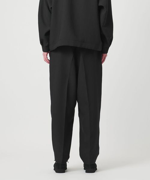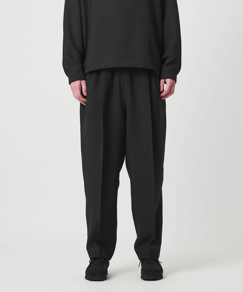 ヒップからワタリにかけて程よくボリュームを持たせ、裾に向かって緩やかに細くなるワイドテーパードシルエットが特徴です。