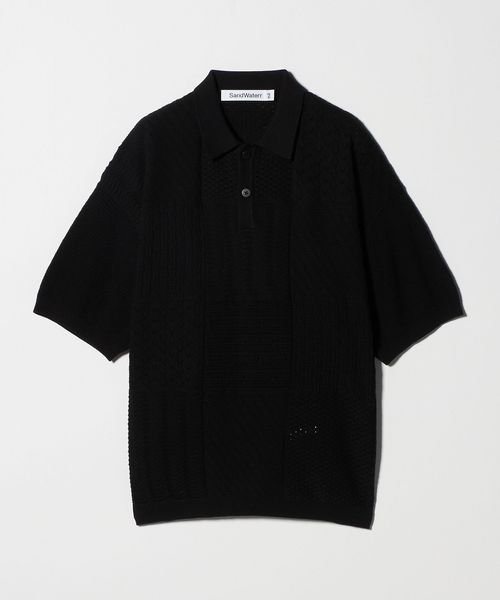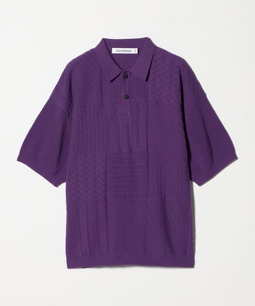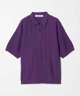 コットン糸で編み立てた、ショートスリーブのニットポロ。