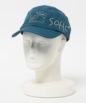 全体にあしらわれたロゴグラフィック刺繍が目を引くキャップ。