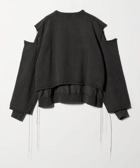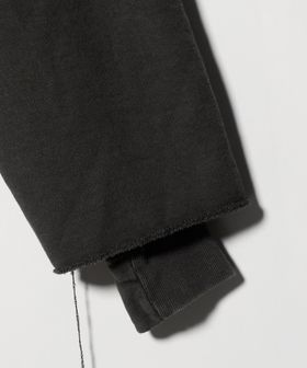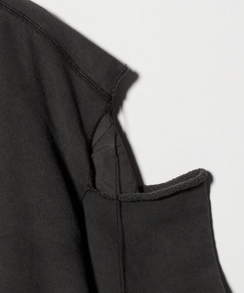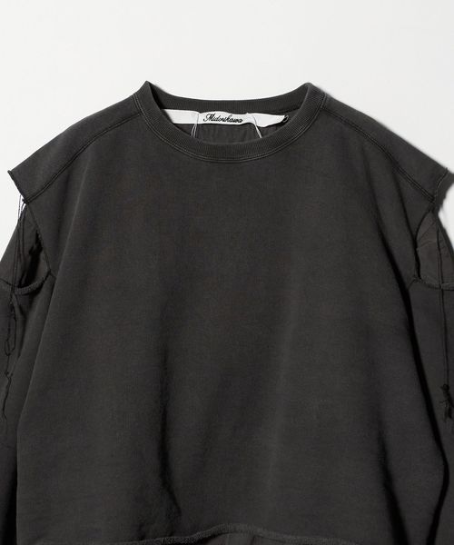 別生地をレイヤードした個性あふれるスウェットシャツ。