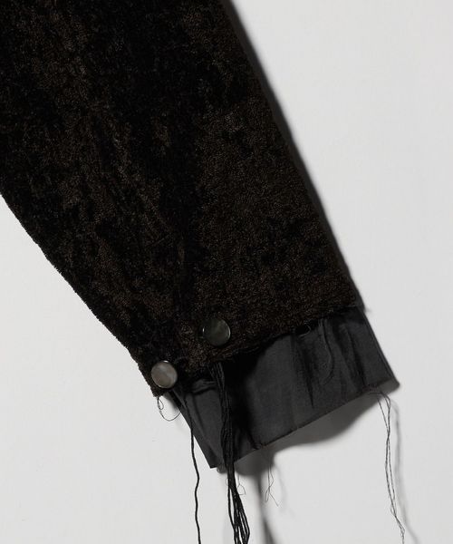 ヒストリカルなメンズの洋服をアレンジし、エレガント且つ唯一無二な感触に仕上げたデザインが特徴。