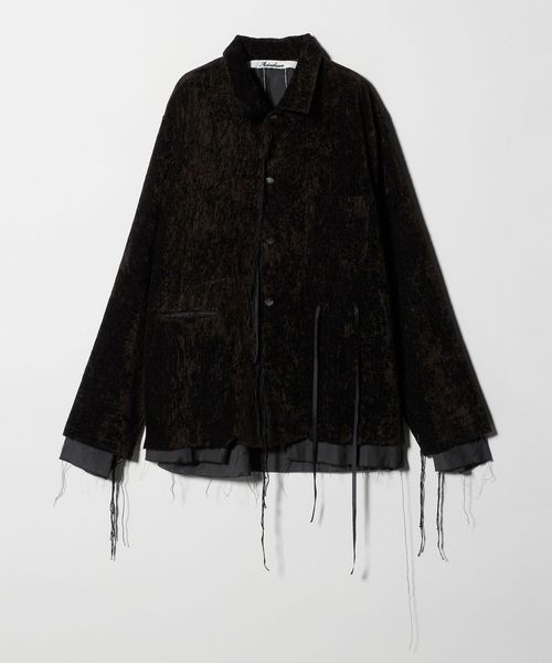 表情豊かな素材を使用し、別生地をレイヤードした個性あふれるシャツ。