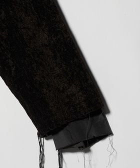 こうした装飾は、紳士服のベースを踏まえた上であしらわれており、絶妙なバランス感で服を構成。徹底したフィッティング・サイズバランス・装飾によって作られた服は、ベーシックなようでアヴァンギャルドな仕上がり。