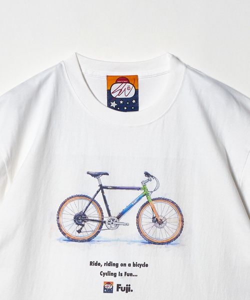 日本のブランド<SWJP>と、1899年に日本で創業し現在はアメリカを拠点に120年を超える歴史を持つ老舗自転車ブランド<FUJI>による、日米それぞれの背景をあわせ持つ両者による、初のコラボレーションを記念したTシャツが登場。