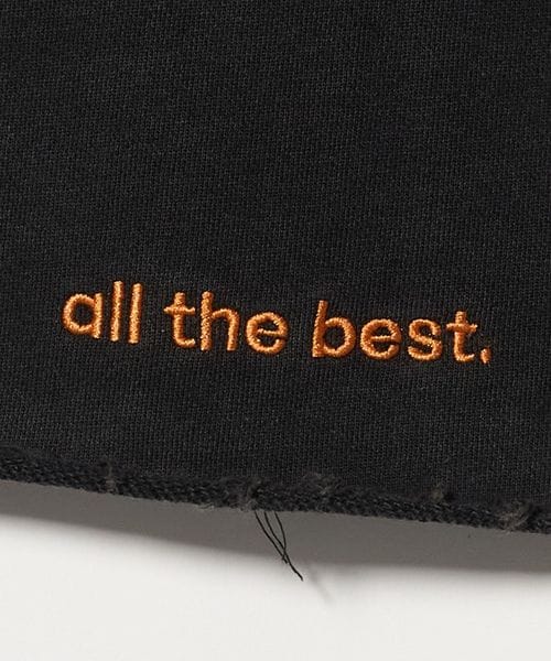 背面ポケットにはブランドロゴ、右裾にはブランドスローガン 「all the best.」 をオレンジの刺繍で配置。
