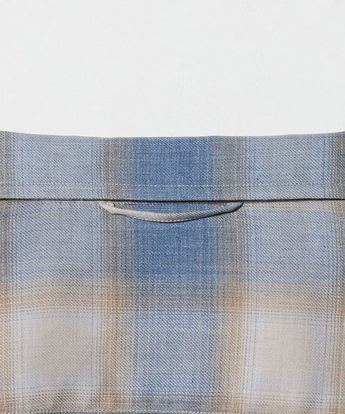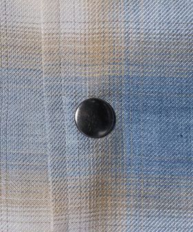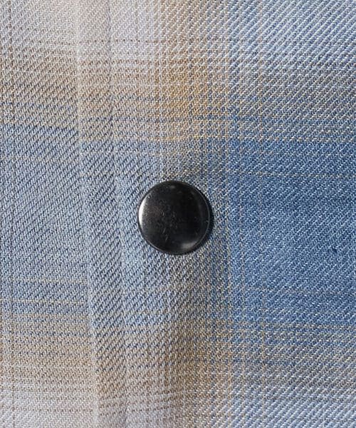 オンブレチェック柄にメタリックカラーのボタンのコントラストが映えるデザイン。