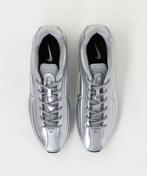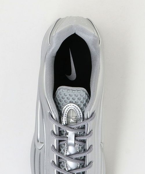 テキスタイルのアッパーに合成皮革のアクセントをあしらい、オリジナルのShoxスタイルを演出。