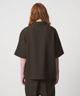 レギュラーカラーに、フロントは隠し1スナップボタン仕様でクリーンな印象に。