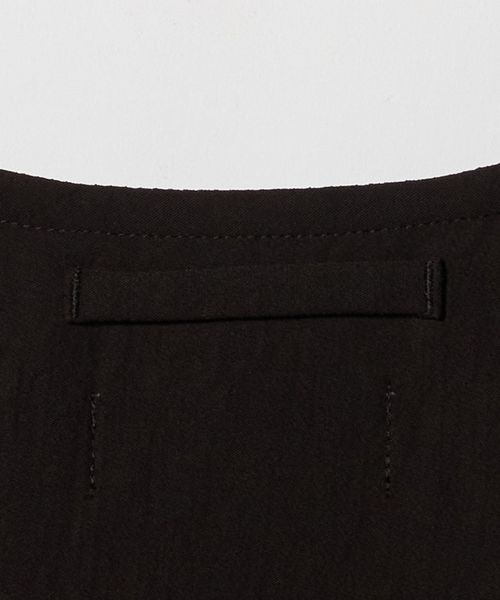 このシリーズの特徴である、「Less」なデザインを意識し、女性の身体的特徴に合わせてタックやファスナーを配することで体の凹凸をカバーしフラットに見えるように仕立て、着心地のよさも追求しています。