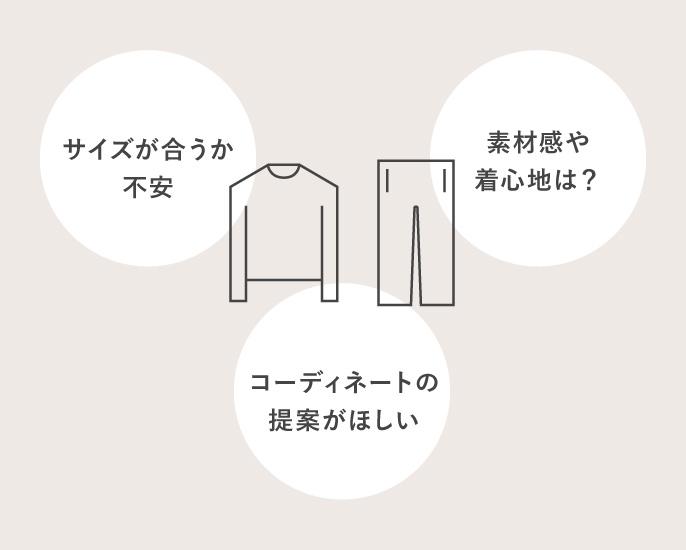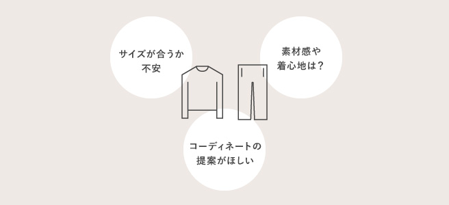 商品のサイズ感や素材の特徴、コーディネートのご提案など、幅広くご相談いただけます。