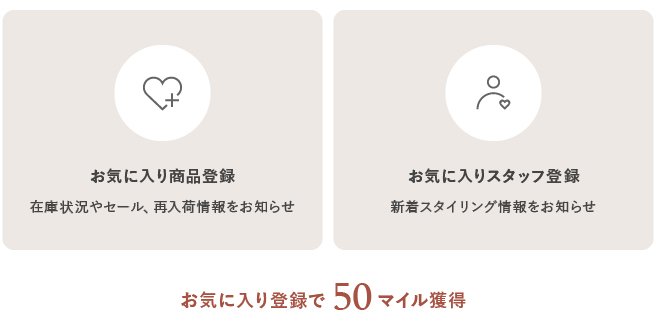 さらに、登録ごとに50マイル獲得できます。気になる情報を逃さず、便利に・お得にお買いものをお楽しみいただけます。