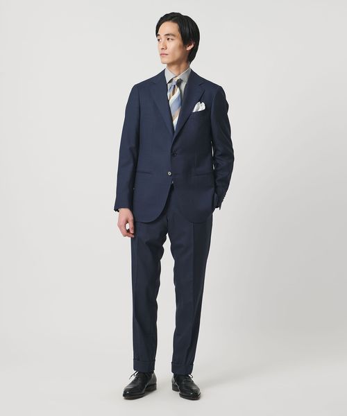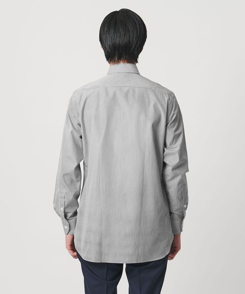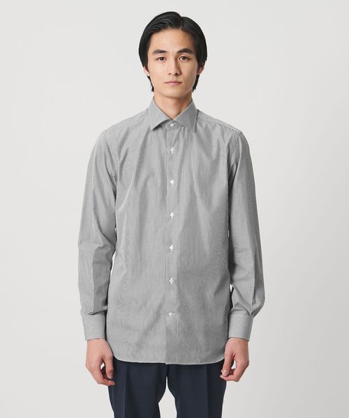 ネイビーやチャコールグレーのスーツに合わせて、シャツのストライプが程よいアクセントになり、落ち着いた中にも品のある着こなしを楽しめます。