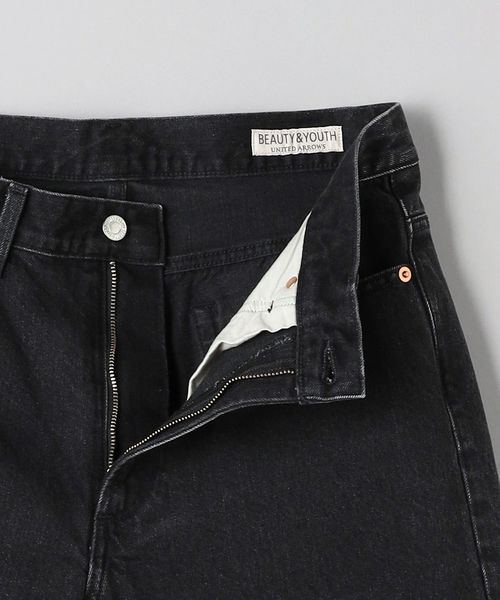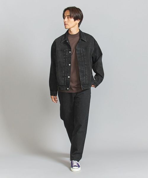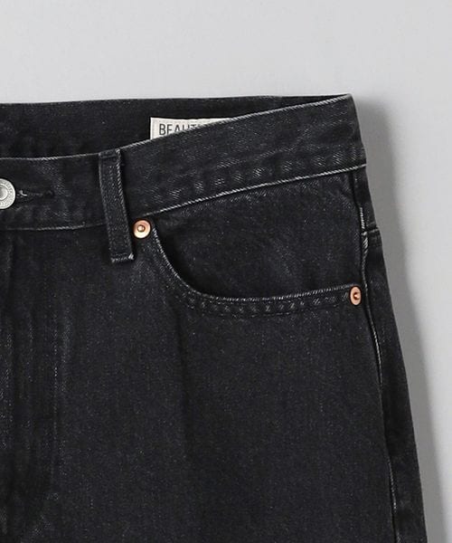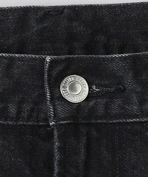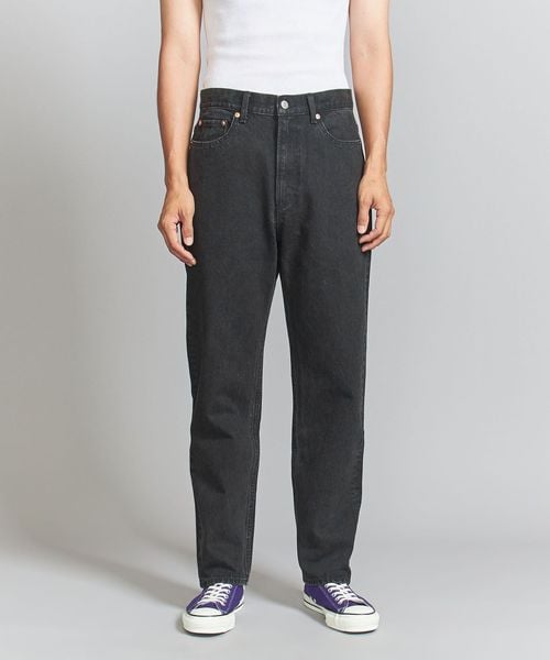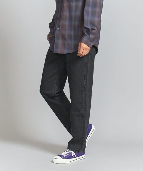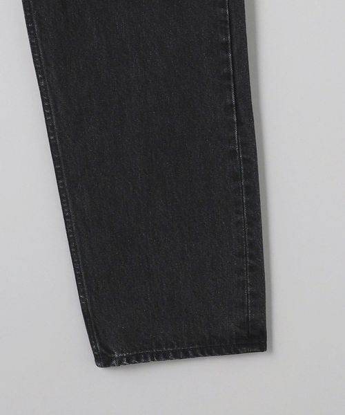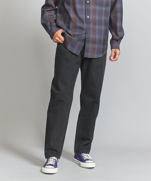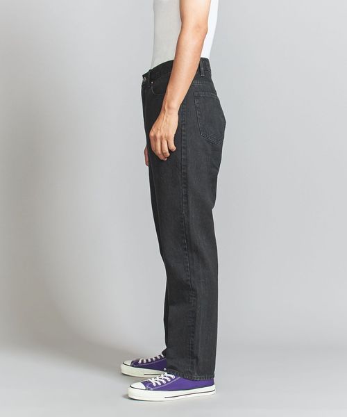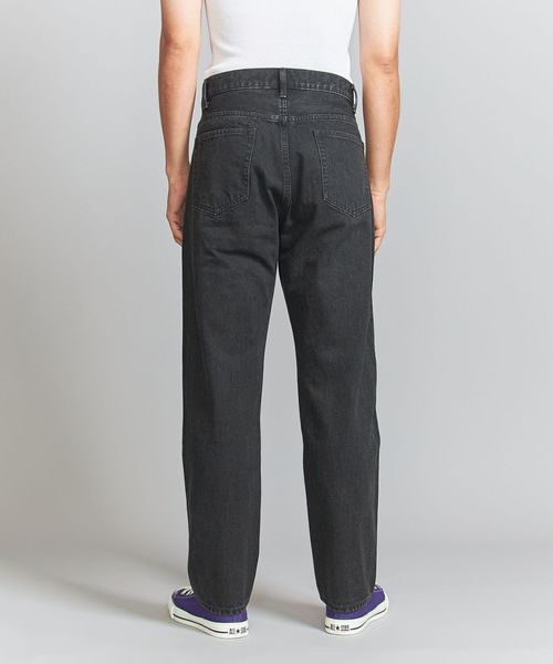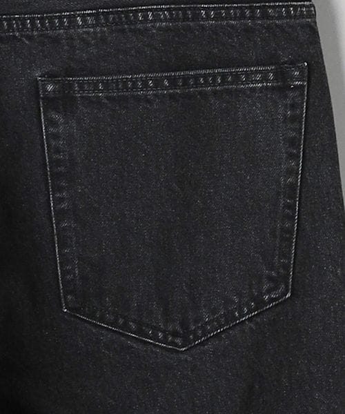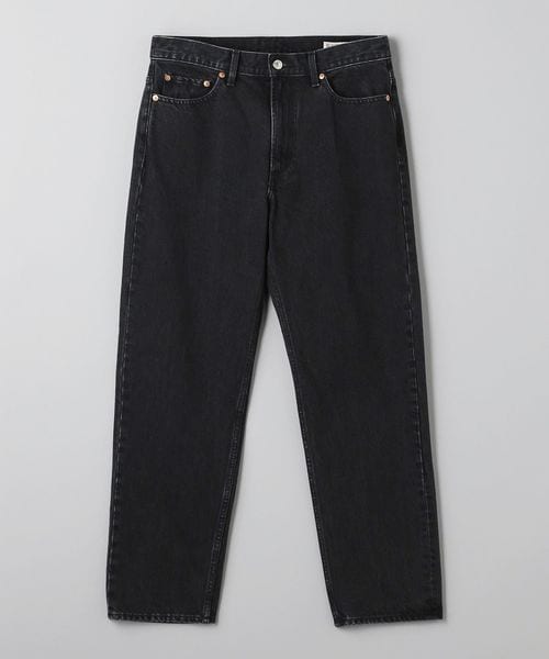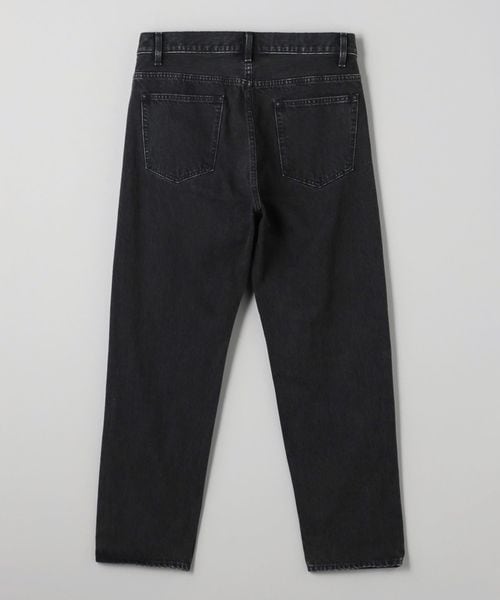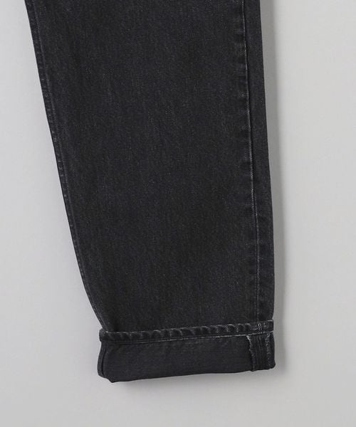 裾にかけて狭くなるテーパードシルエットのブラックデニム。