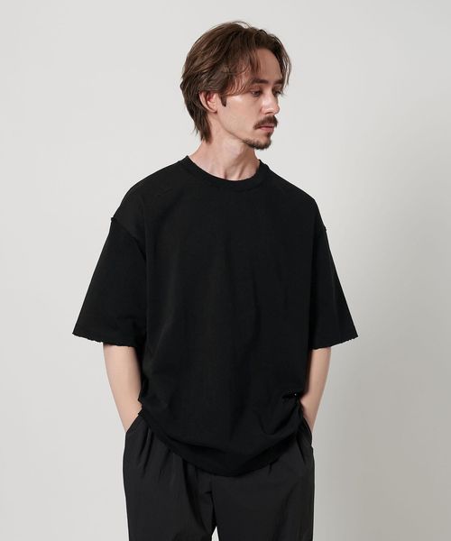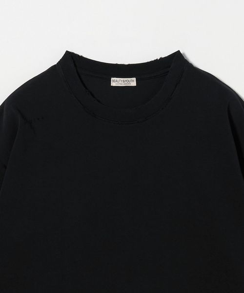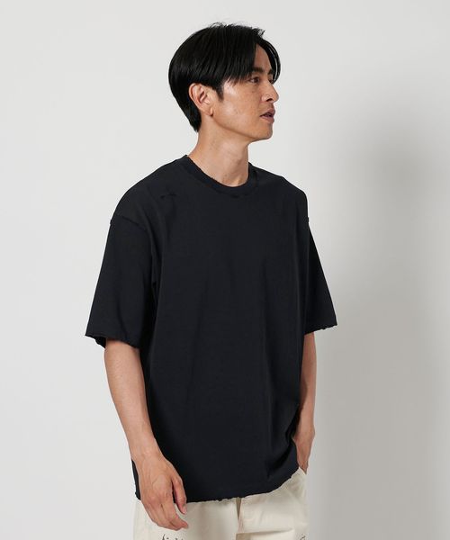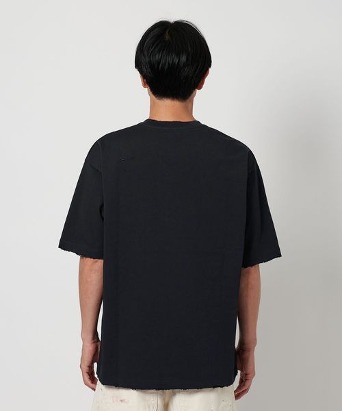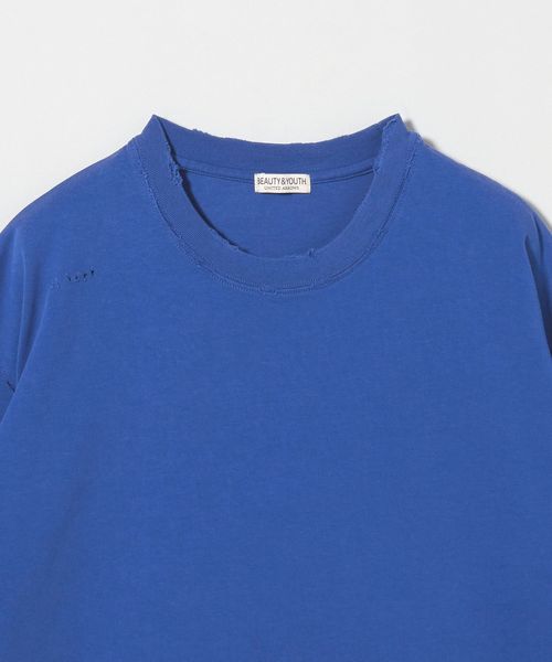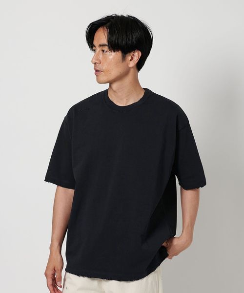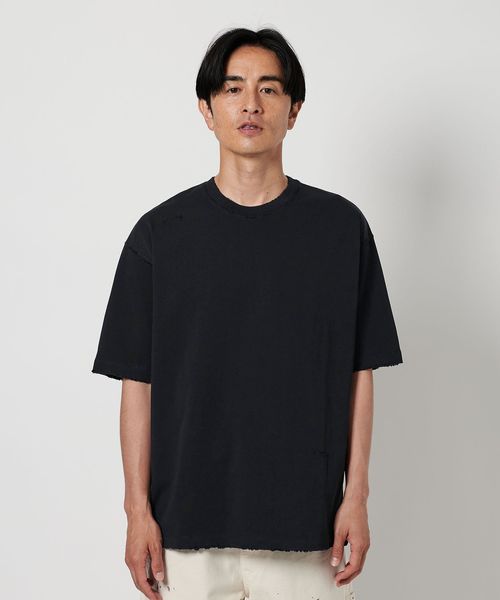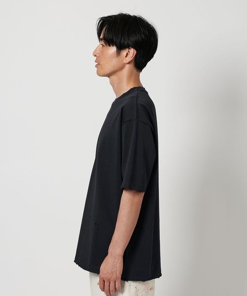 衿周り、袖口、裾周り、アームホールに加工(ダメージ)をしたTシャツ。