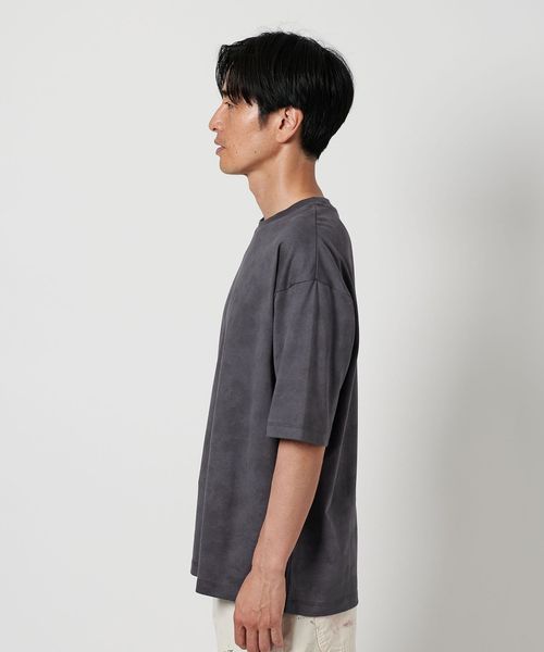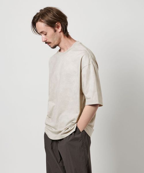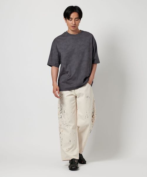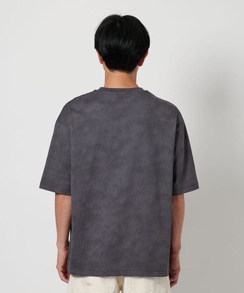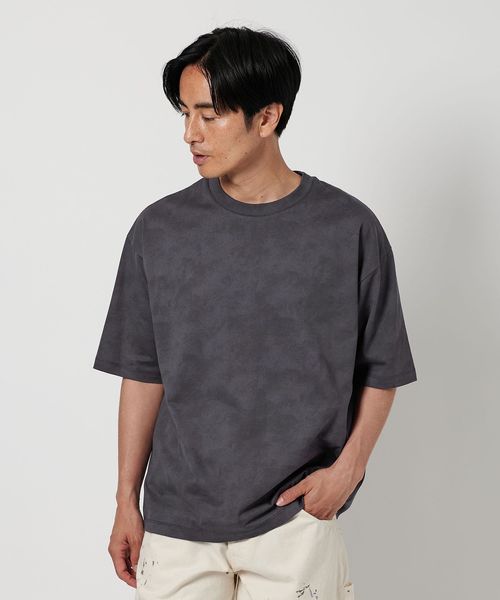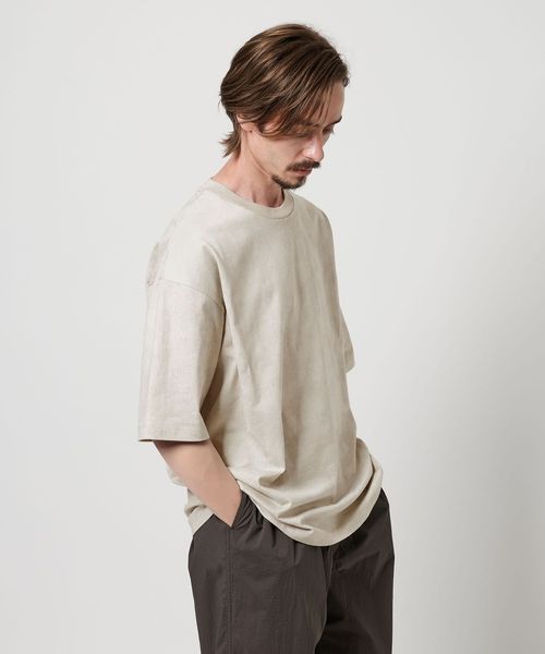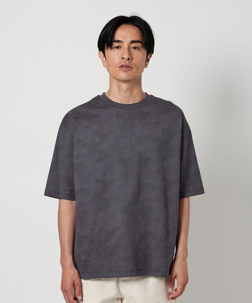 キレイめな天竺生地に、ムラ染めを思わせる繊細なプリントを重ねたデザインカットソー。