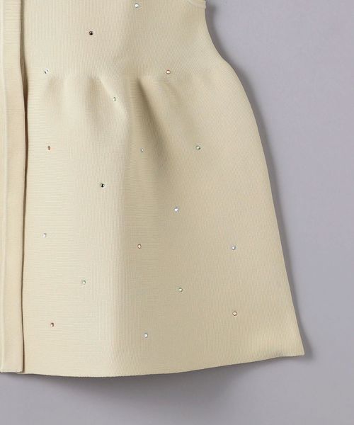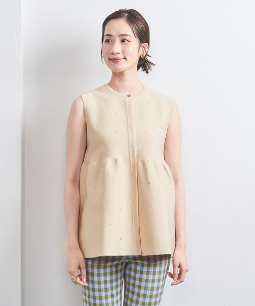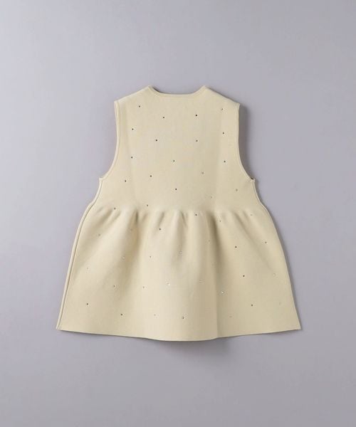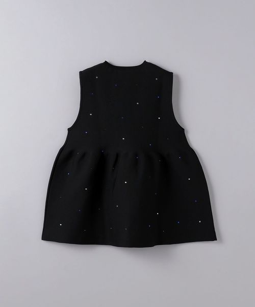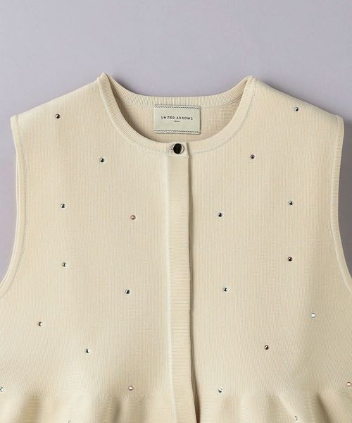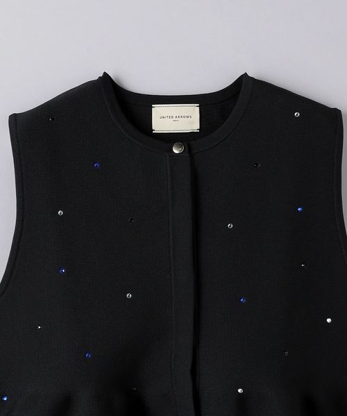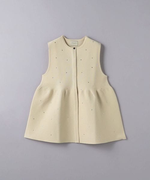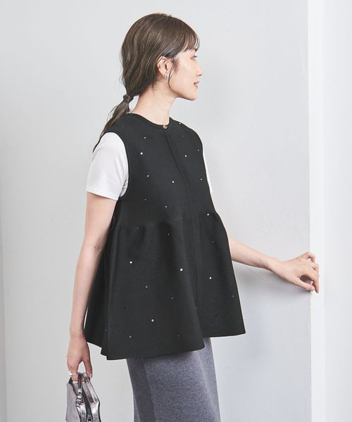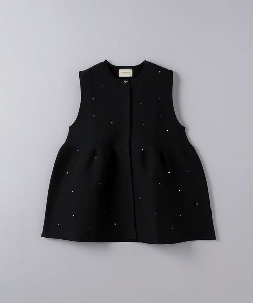 好評をいただいたペプラムデザインのニットベストに、きらりと光るビジューを散りばめてグレードアップさせました。