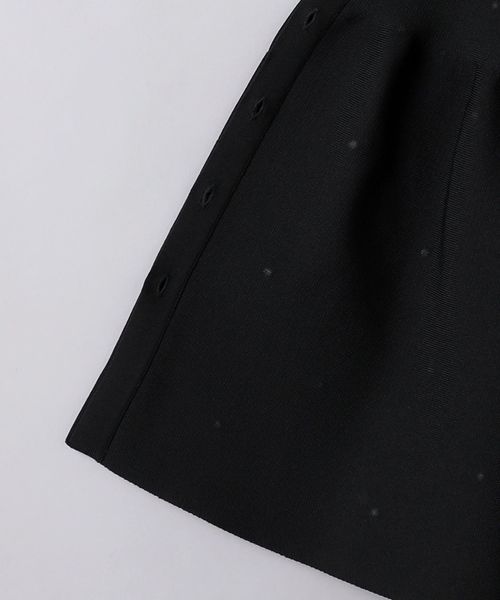 高めの位置に入れた接ぎの無い切り替えで美しいフレアを構築し、比翼仕立てですっきりとした印象に仕立てています。
