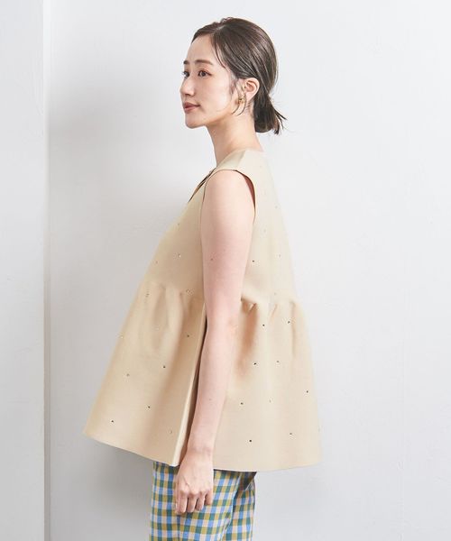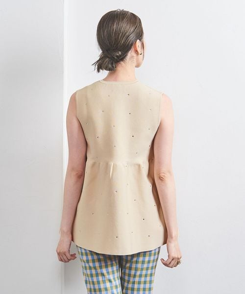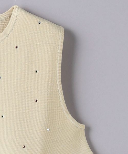 ビジューの装飾をほどこした人気モデルのノースリーブニット