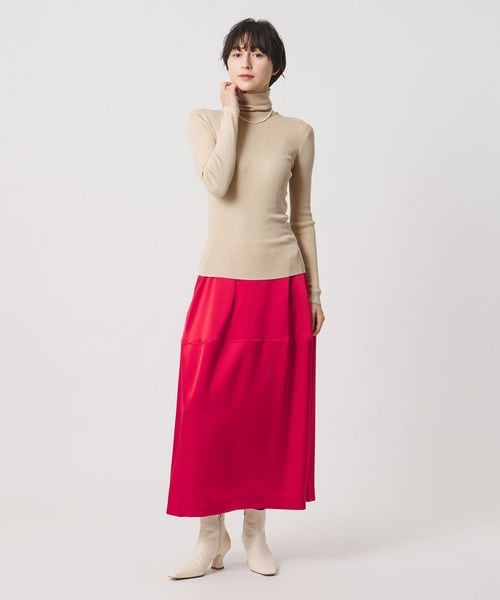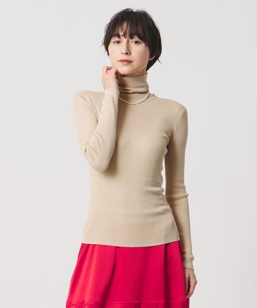 豊かな表情やフィット感の良さが魅力の細リブ編みのタートルネックニット。