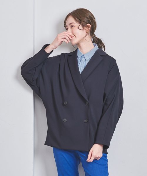 身頃から繋がったドルマンスリーブのシルエットが女性らしいブラウスジャケット。