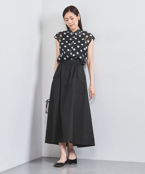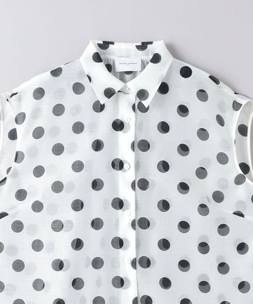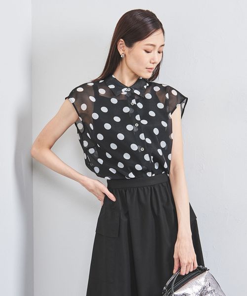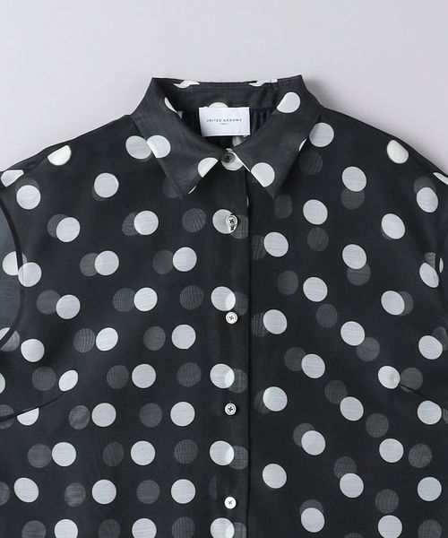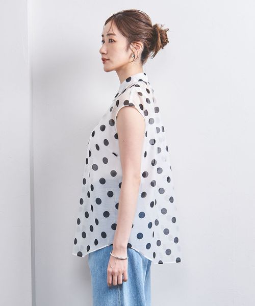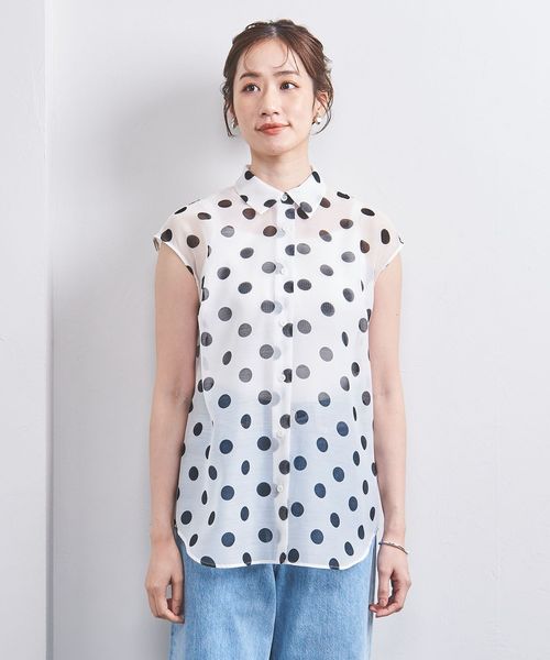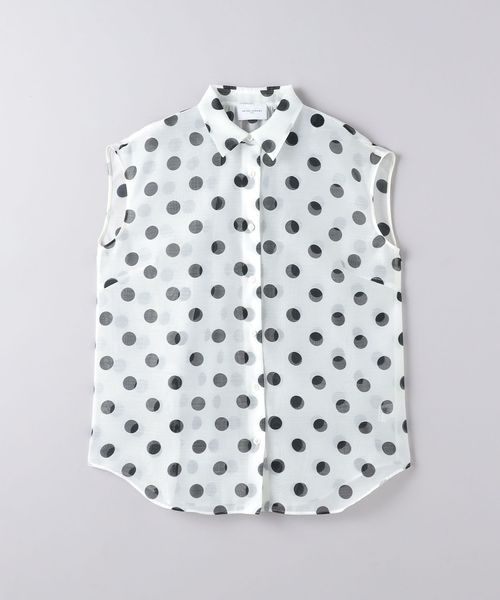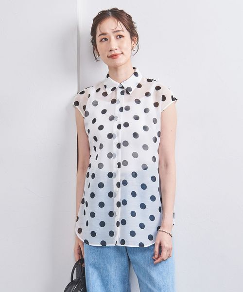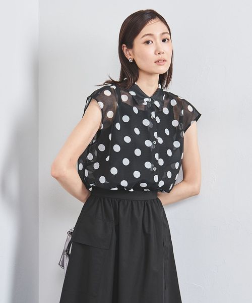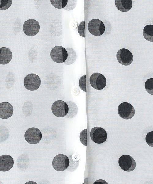 大柄プリントをシアー素材にのせることで印象を和らげ、全面プリントも取り入れやすく。