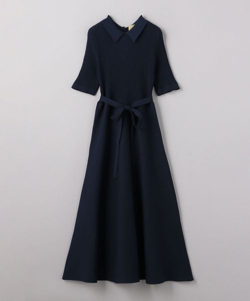 リブトップスと、ミラノリブのフレアスカートのコンビネーションワンピース。