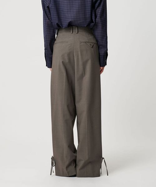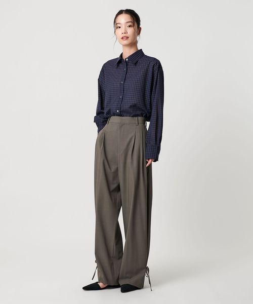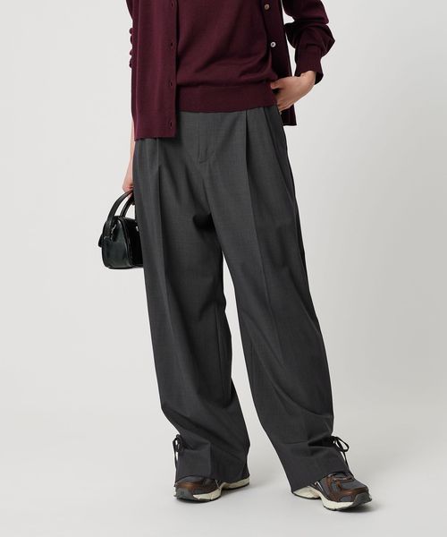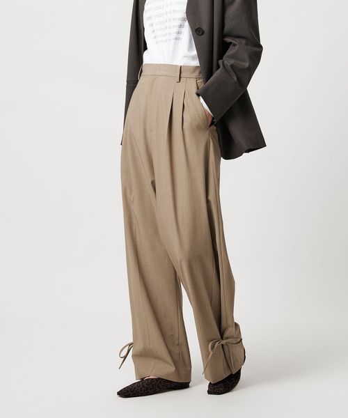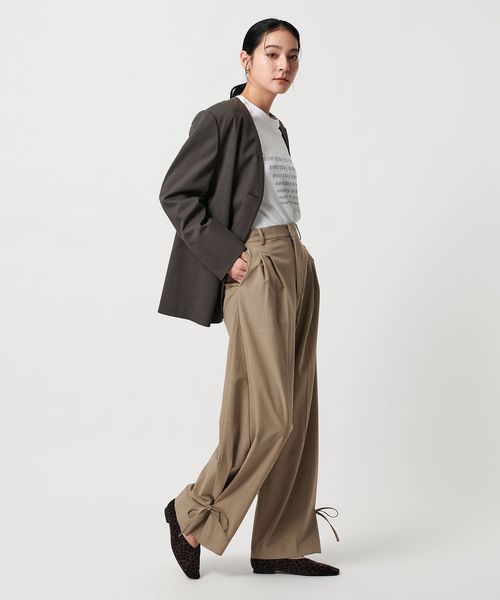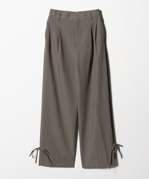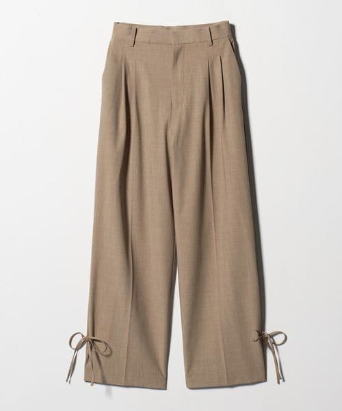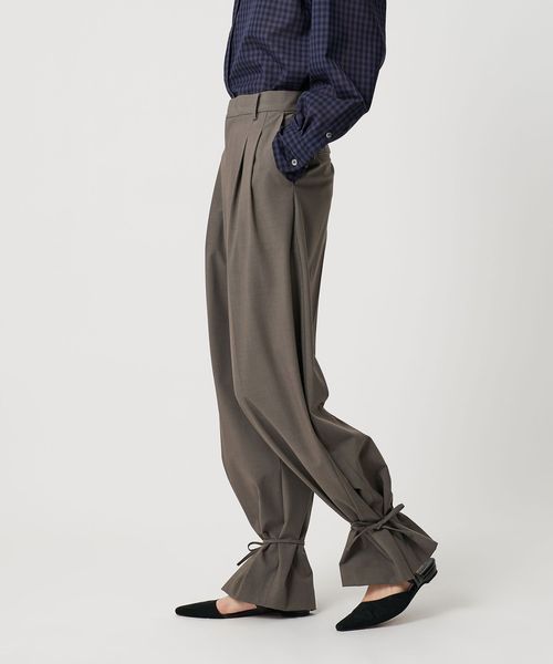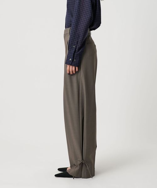 タックやセンタープレスの入ったきちんと感のあるデザインながら、足元のリボンが遊び心を加えてくれます。