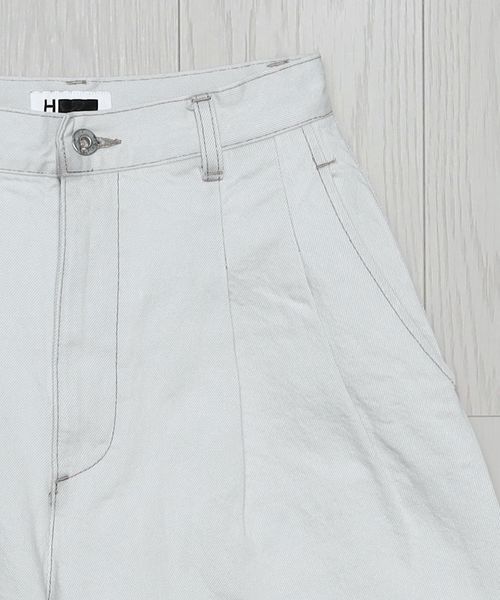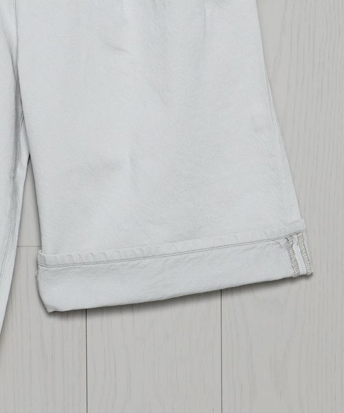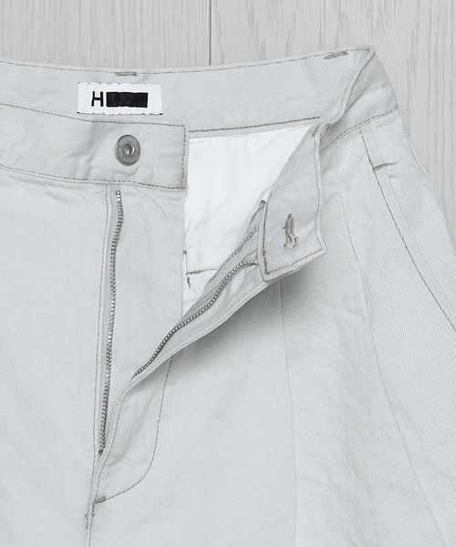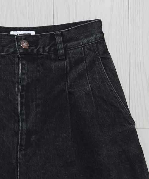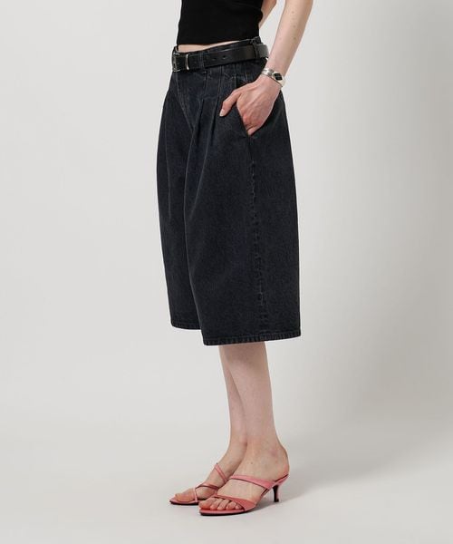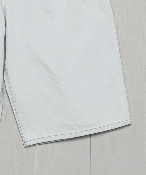 2タックのスラックスディテールで仕立てた13ozデニムのハーフパンツです。ブラックデニムをベースに、ハイブリーチのホワイトと、弱めのブリーチで味を出したダークグレーをご用意。バランスの取りやすいハイウエストデザインで、トレンドのクロップド丈や、ヒップが隠れる長めのトップスとも好相性です。足元は重厚感のあるロングブーツを合わせて、クラシックなムードを添えるのもおすすめ。日常のワードローブに寄り添いながら、トレンド感のあるスタイルに導く新鮮な一着。