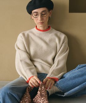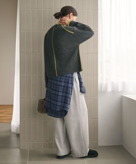 シーズンコーデの主役級。カラーラインで着映えるクルーネックニット。