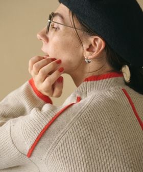 毎年人気のカラーラインが目を引くニットが今年も登場。