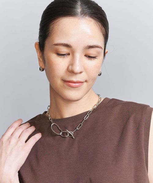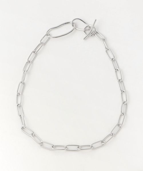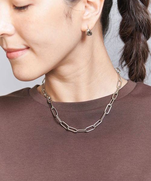 細長い形のチェーンを使用した、存在感のあるネックレス。