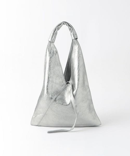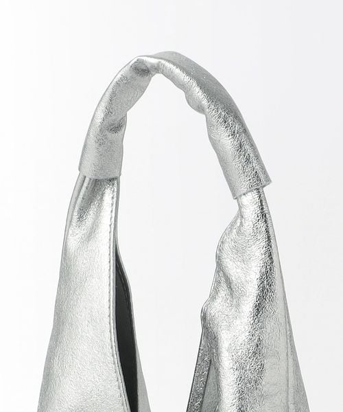 レザーを使用したメタリックカラーが目を引くショルダーバッグ。