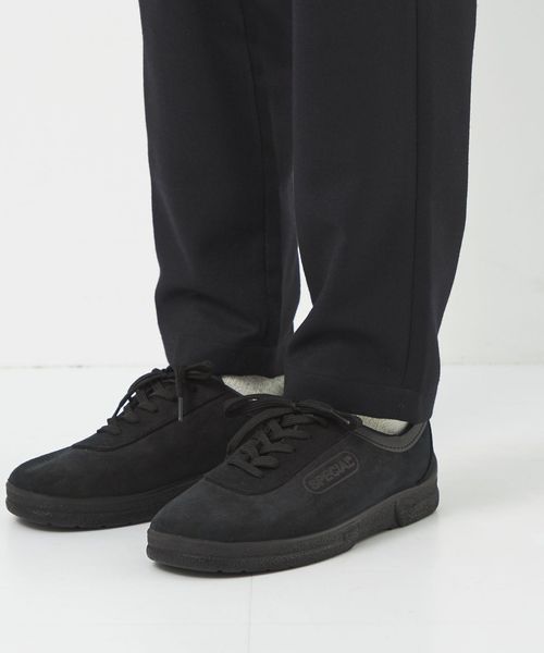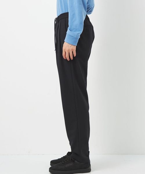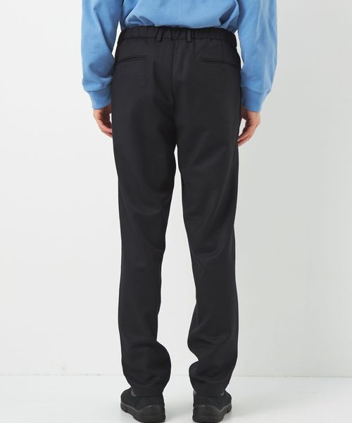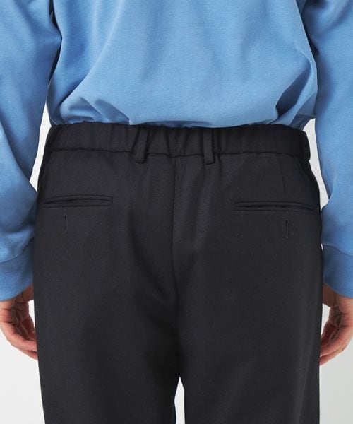 ウエストにはドローコード、後部ゴム、ベルトループが付いているのでイージーパンツのようなリラックスした着用から、ベルトを使ったトップスインの着こなしまで幅広く対応します。