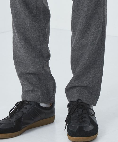 ノープリーツで、裾に向かってテーパードのかかったすっきりとしたシルエット。