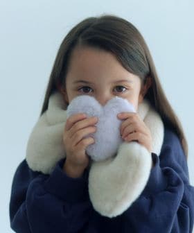 首元をしっかりあたためながら、先端のハートモチーフがキュートなアクセントになっています。