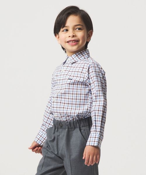 シックなブラウンと、可愛らしい印象のライトブルーのチェック柄。