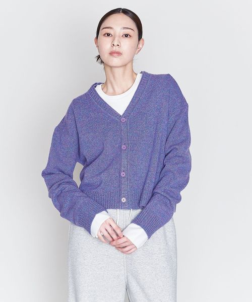 えり元からのぞく二重仕立てのデザインが遊び心感じるVネックカーディガン。