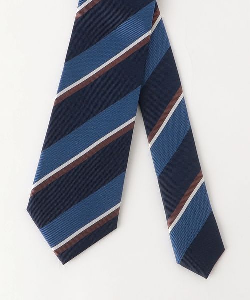 スーツスタイルにオーセンティックな空気感ときちんとした印象をもたらすストライプ柄のネクタイです。