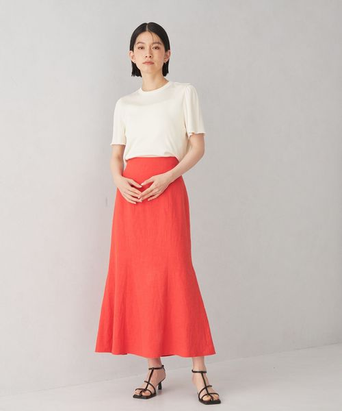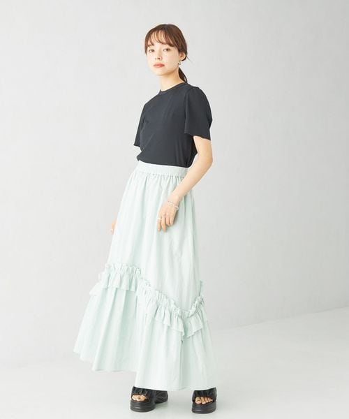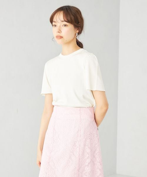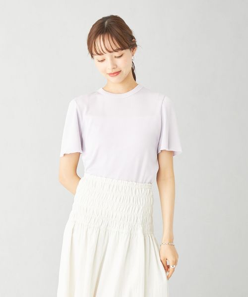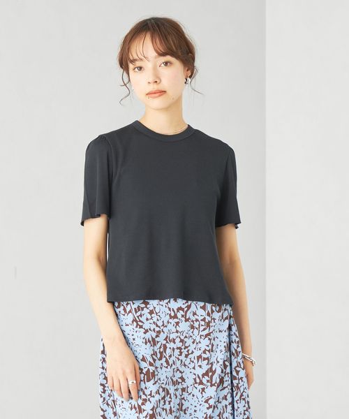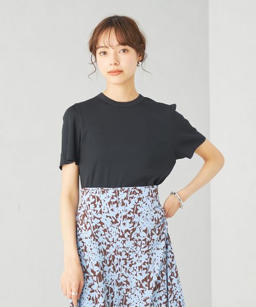 艶感のあるテレコ生地。透けにくい肉感はありながら程よく柔らかい風合いなので、カジュアルすぎず、きれいめな印象で着ていただけます。