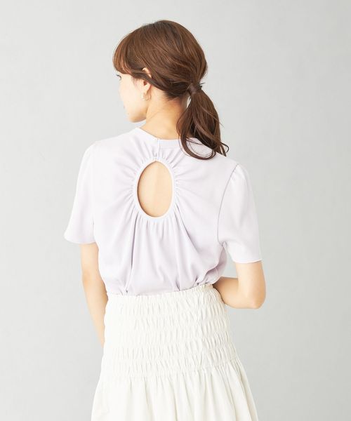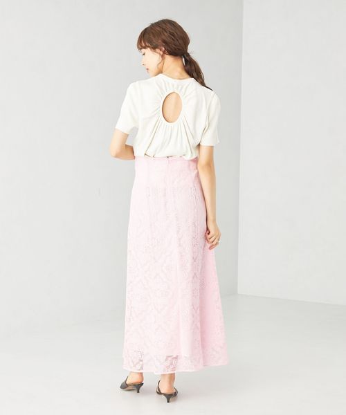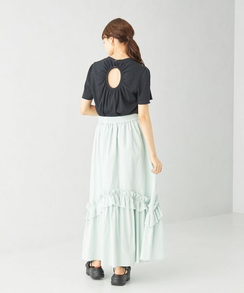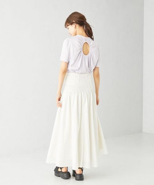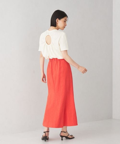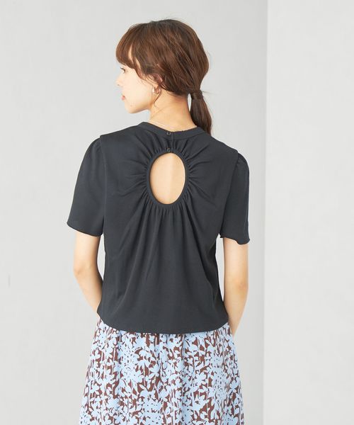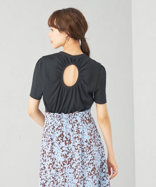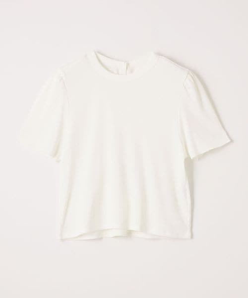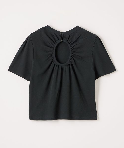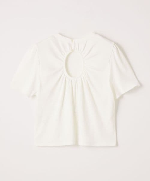 フロントはシンプルに、バックオープンデザインがポイントのTシャツは、ショート丈でコンパクトなシルエットが今年らしいバランス。