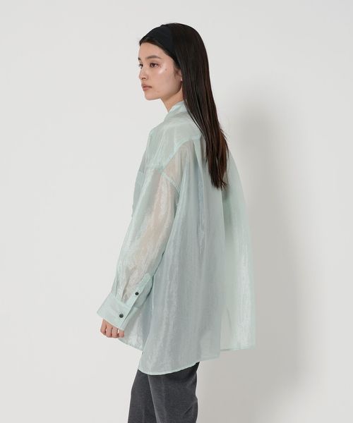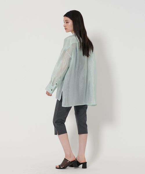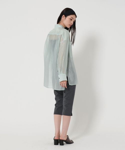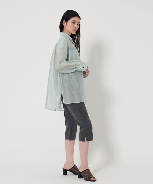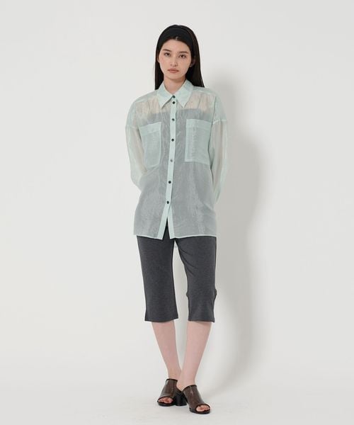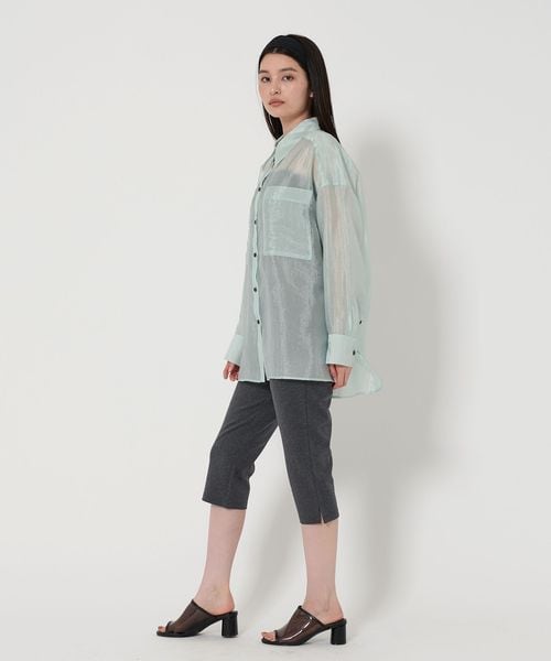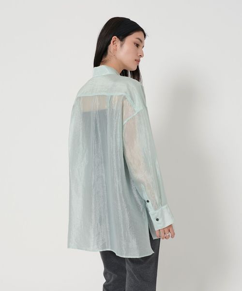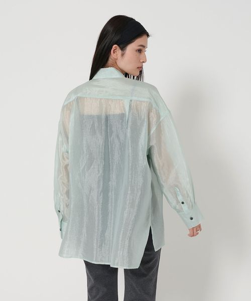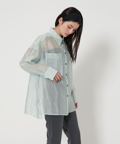 女っぽくもカジュアルに着こなせるシアーシャツ。