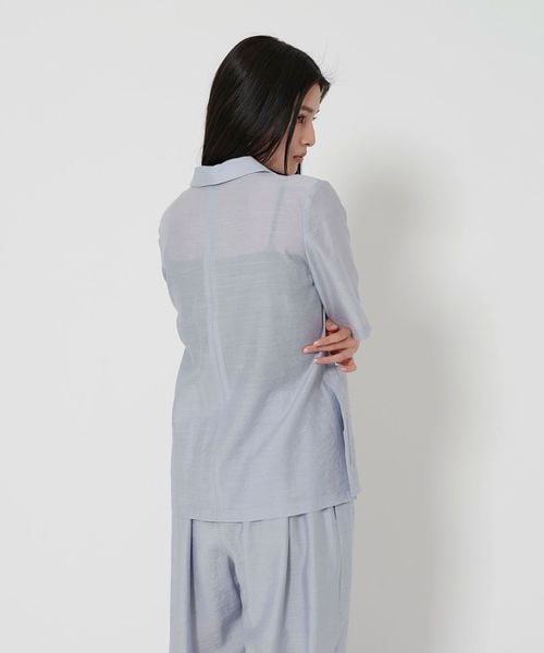 肘までかかる袖丈で、夏のジャケットとしてオンオフ着まわしていただけます。