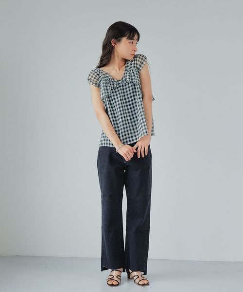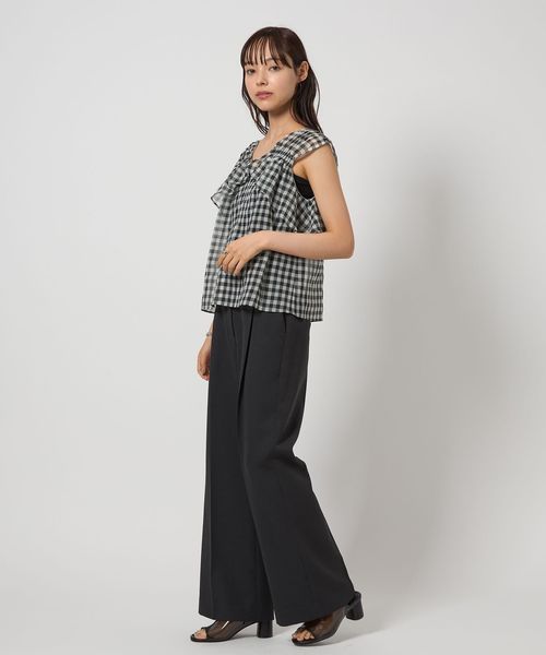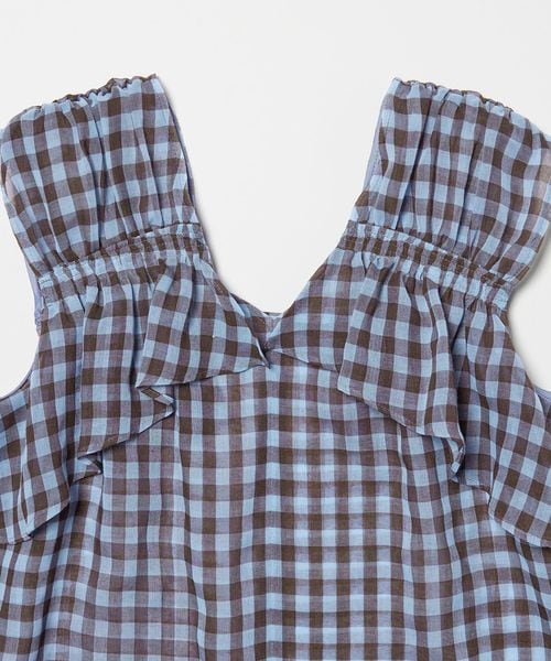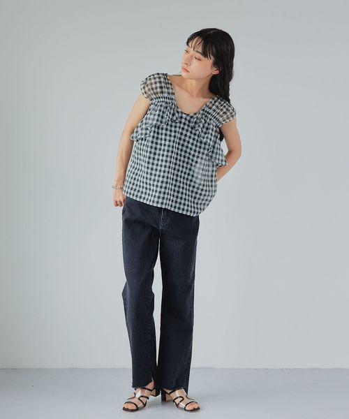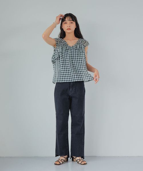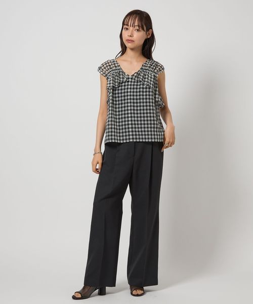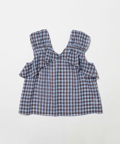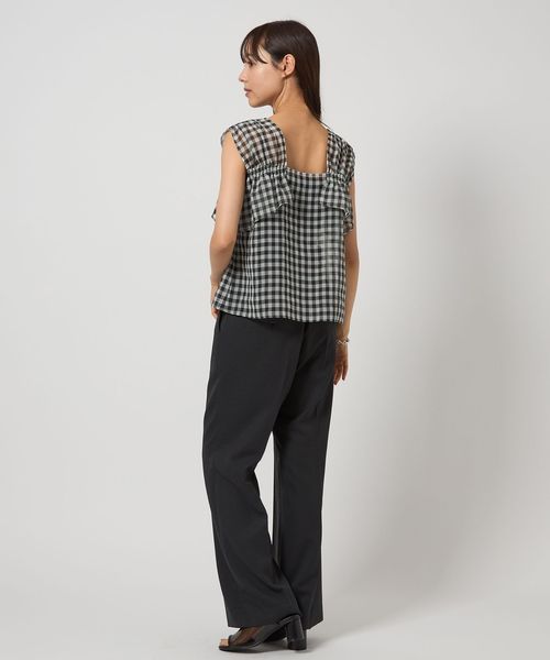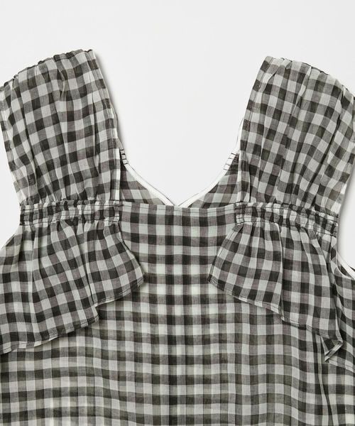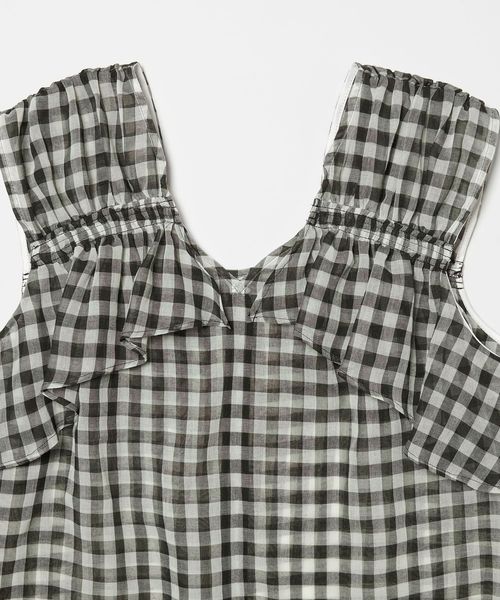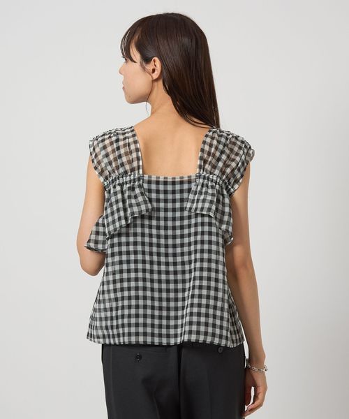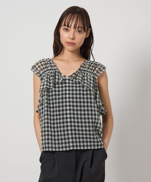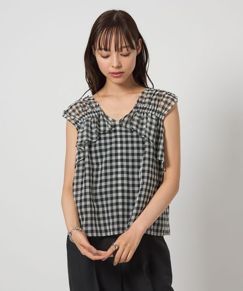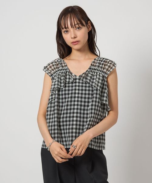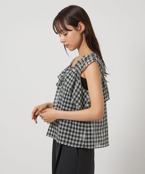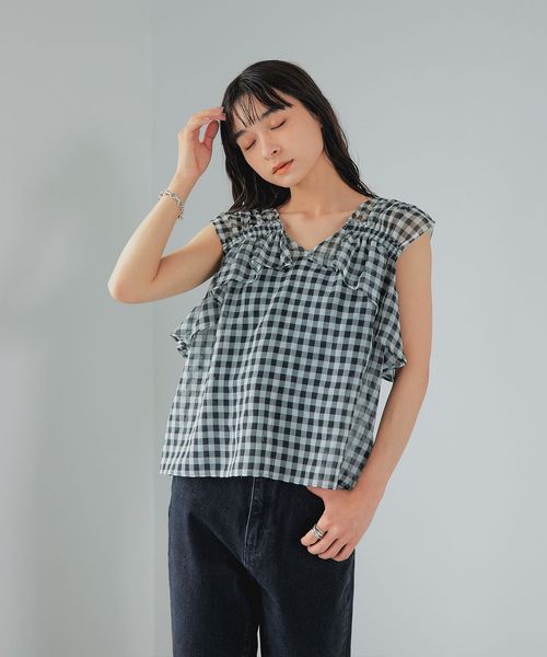 シアー感のあるギンガムチェックが大人っぽく着られるノースリーブブラウス。